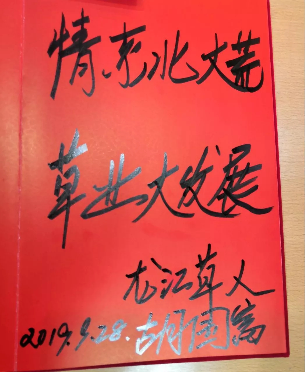 (9)东北农业大学草业科学系胡国富系主任参观我校校史馆并题词留念