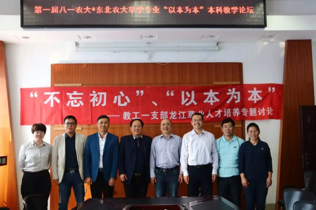 2003年我校整体搬迁大庆后,两所农业大学地缘紧邻,方便了两校教师的交流合作。历史上,我校草业专业杜广明教授与东北农大草业专业崔国文教授早有频繁学术合作与交流活动,本次论坛继往开来,为落实教育部坚持“以本为本”,推进“四个回归”的文件精神,于2019年9月28日上午在我校永利yl23411集团动医楼小会议室召开了第一届八一农大*东北农大草学专业“以本为本”本科教学论坛——暨“不忘初心”、“以本为本”教工一支部龙江草业人才专题讨论会(两校支部党务交流学习活动)。