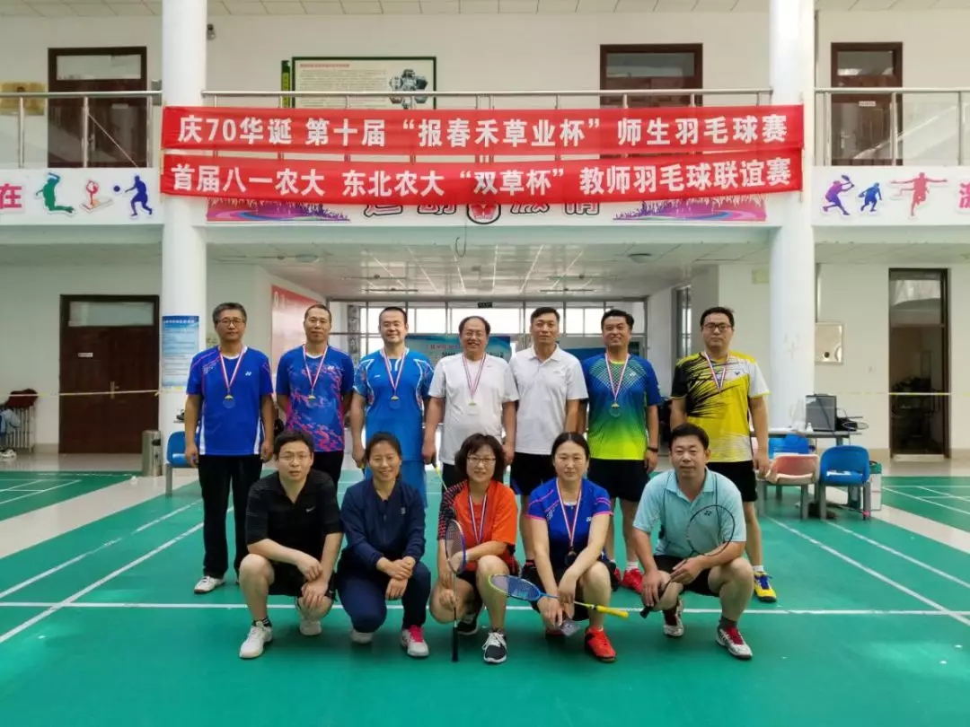 论坛结束后,两校教师移步我校工程学院羽毛球场参加了首届八一农大*东北农大“双草杯”教师羽毛球联谊赛,当天下午东北农业大学胡国富、王明君、张攀等草业系教师参观了我校校史馆,了解了我校61年来“两地”本科办学校史展,参观完毕,草学同仁胡国富教授还亲笔留下了墨宝“情系北大荒,草业大发展”。