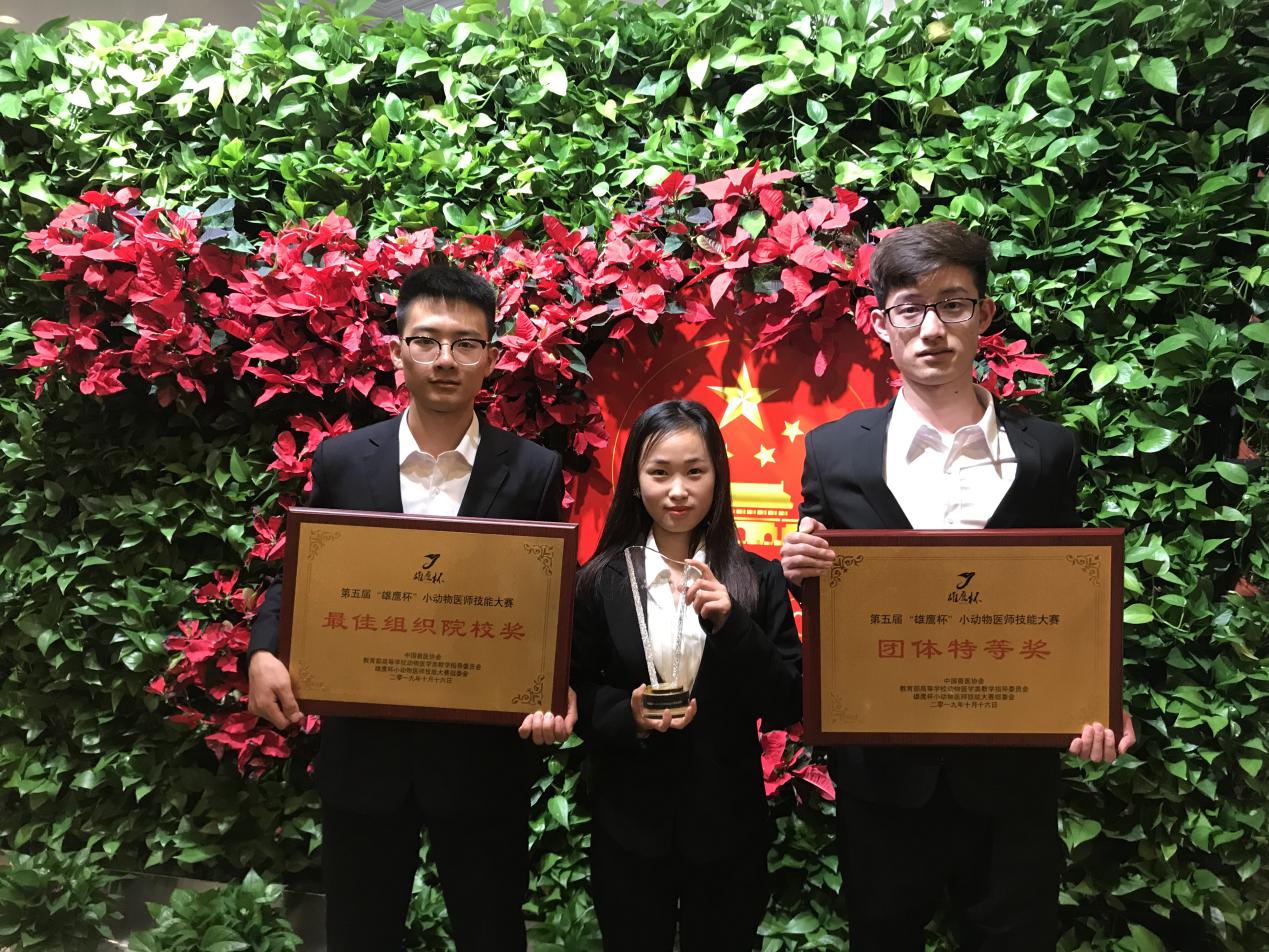 在郑家三老师、鲁文赓老师、李冉老师和葛岩松老师的悉心指导下,大学生组选手周志新、孙悦、杨强团结协作,配合默契,经过2天紧张而激烈的竞争,在82支代表队中夺取大赛团体特等奖的好成绩;周志新同学获得“中国兽医新星"奖;同时鲁文赓老师、李冉老师和葛岩松老师获得“优秀辅导老师”特等奖;团体获得“最佳院校组织奖”。(囊获了比赛全部奖项!)