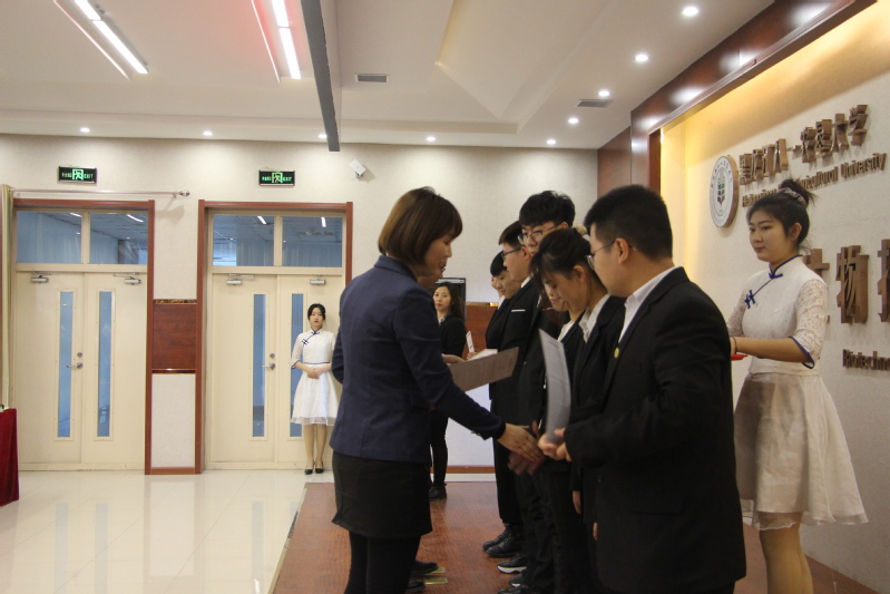 与会领导为受表彰的教师、学生颁发“大北农奖教金”、“大北农励志奖学金”证书。受表彰学生代表蒋庆雪发言,表达了对企业、学院的感恩之情。