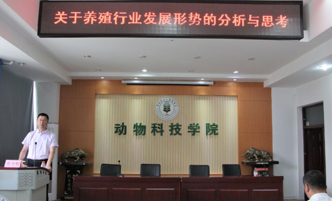 颁奖典礼结束后,高全利先生还为全院师生做“关于养殖行业发展形势的分析与思考”主题报告。 高全利先生介绍了我国养殖行业旧时代跨入新时代的变化过程,同时表达了养殖行业的经济发展需要包涵内力的聚合和外力的冲击才能够产生变化。我国已经迈入了一个新的时代,养殖行业将会由散养户逐渐到专业化,从数量型到品质型,从省钱思维到溢价思维,从养殖型到经营性。高总不仅以饱满的热情为老师同学们介绍了养殖行业发展的形式和对未来的思考,也由衷的表达了对母校yL23411永利的热爱和怀念。场下所有人无不感受到高总的这份热情,被高总对母校的热爱之情深深打动。最后,高全利先生表达了对永利yl23411集团研学的肯定,期望同学们能够勤奋努力,为我国的养殖行业做出巨大的奉献!