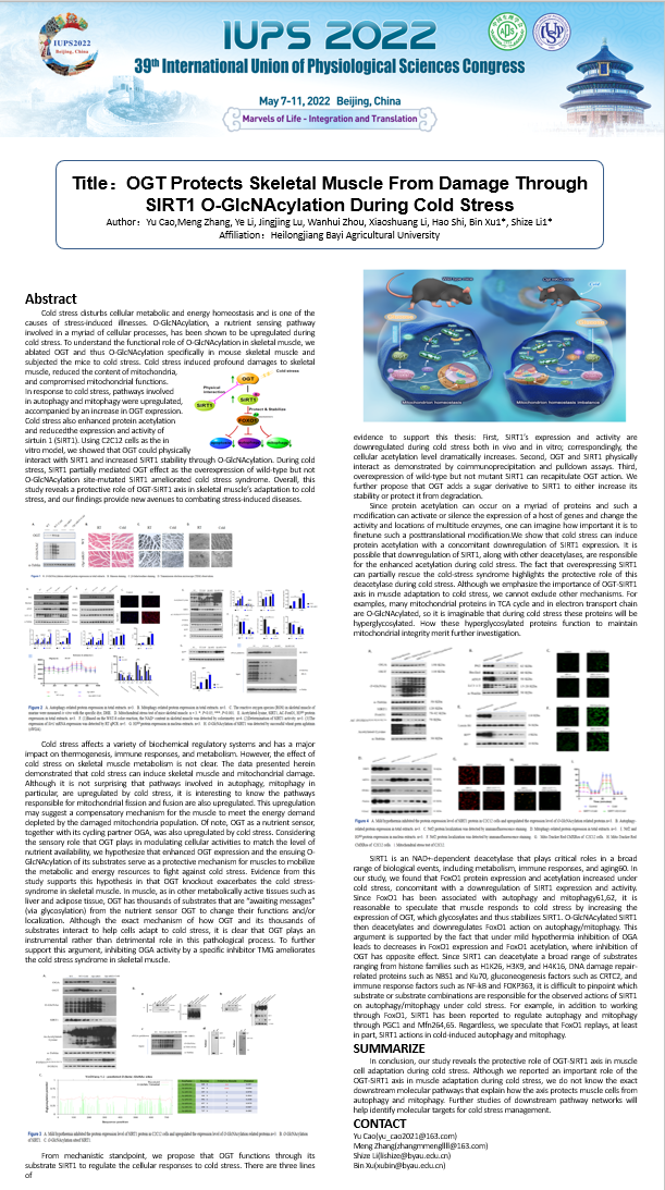 会议上,我校永利yl23411集团生理教研室全体师生参会。我院硕士研究生张萌和聂君书在此次会议上在做壁报展示,这是继杨焕民和李士泽老师在日本名古屋举办的第三十七届IUPS大会上做现场展示后,再一次在国际会议上代表我校展示科研风采。