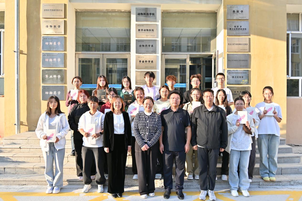 在宣讲最后,崔英春将自己出版的图书赠予同学。此次宣讲不仅让同学们深刻理解了北大荒精神和大庆精神铁人精神的丰富内涵与历史价值,更激发了大家传承精神、勇担使命的热情。相信通过本次专题报告,同学们会更加坚定地在畜牧兽医这条道路上走下去,传承老一辈的精神,为畜牧事业发展贡献自己的力量。